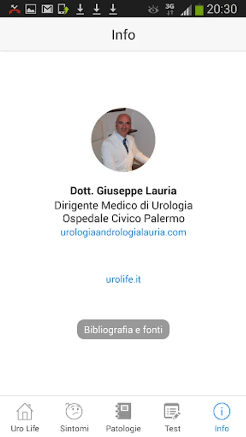 In the info, links to the websites of dr. Giuseppe Lauria for a direct contact with the specialist.