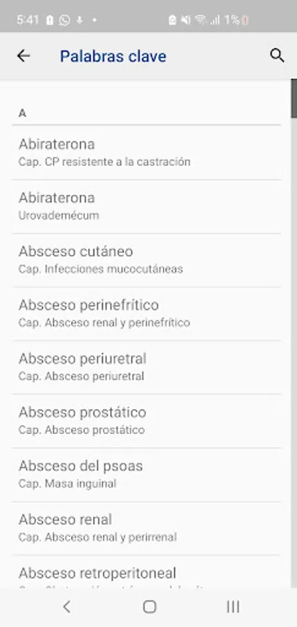 The book is divided into sections that are accessed from an index on the main page of the application. Each section contains a list of chapters, which can be opened individually. In addition, there is a keyword index, a chapter index, and an index of abbreviations used in the text. Other features of the application are:
