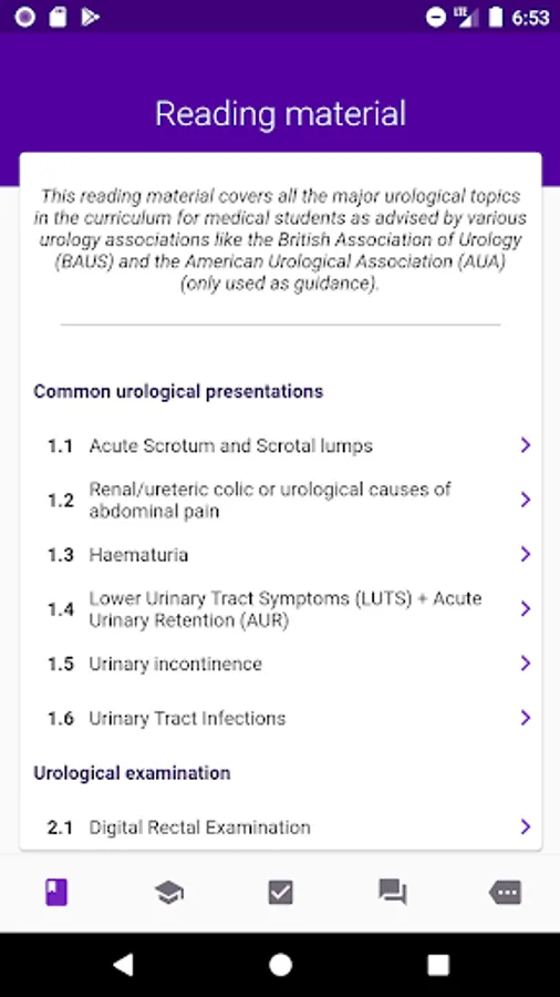 A concise, simple and user-friendly app on urology for medical students. Ideal first introduction to urology for all medical students, interns/foundation year doctors and new surgical trainees. This book covers all the major urological topics in the curriculum for medical students as advised by different urology associations like the British Association of Urology (BAUS) and the American Urological Association (AUA) (only used as guidance). Ideal for quick reading while working or revising- allows you to have urology on your fingertips.