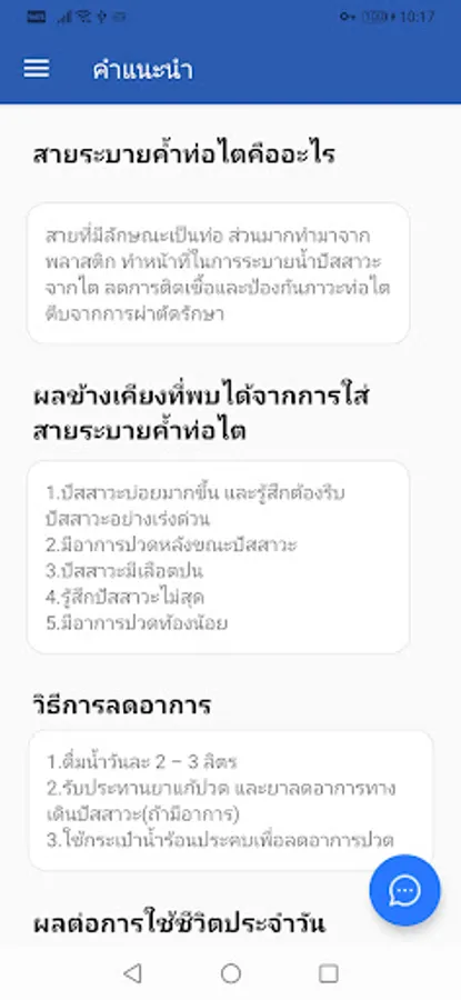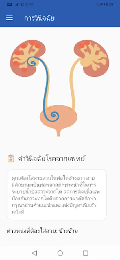 Patients who received a ureteral catheter and use this application service can make the doctor And patients can follow up appointments, replacements, removal of the ureter. according to the specified time in order to be able to reduce complications for patients from inserting a ureter for too long It can also be a communication channel between the doctor and the patient regarding side effects from ureteral catheter insertion. Self-care after catheter insertion and adverse reactions that require hospitalization before the appointment in order to reduce the rate of unnecessarily pre-appointment to the hospital