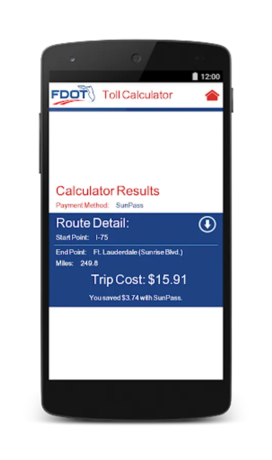 PLEASE DON’T DRIVE DISTRACTED. Please do not attempt to use the FDOT Toll Calculator mobile app while driving. Plan your trip ahead, or wait for a rest stop to access this app.