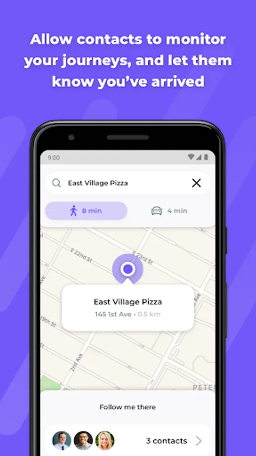Follow Me - Feel secure by allowing your selected contacts to track the journeys and notify them when you arrive and reach your destination safely. Activate the follow me feature to let the contacts know where you are going and they can keep a virtual track of your live location with the GPS tracking on their phones.