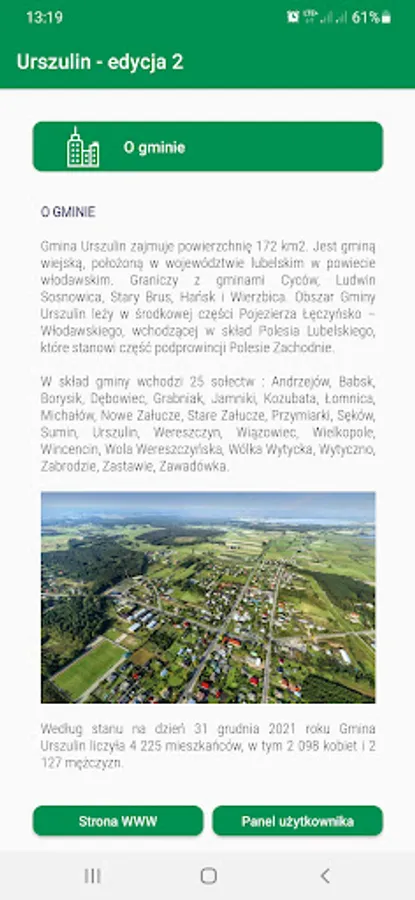 Ponadto, aplikacja prezentuje dane liczbowe dotyczące oszczędności energii, informacje dotyczące projektu i technologii OZE oraz dotyczące walorów przyrodniczych gminy jakie chroni projekt. W aplikacji dostępna jest galeria zdjęć z terenu Gminy Urszulin.