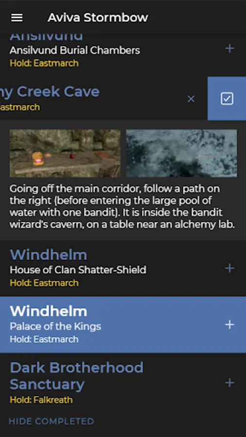 - Tap a Stone location in the list for location walk-through, including map and placement screenshots.