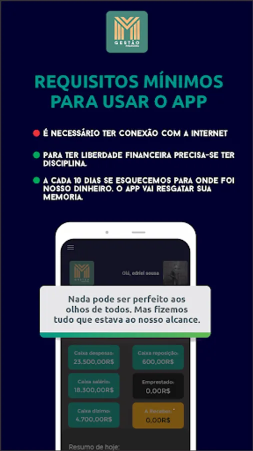 The purpose of this application is this: remember and help you organize your financial life.