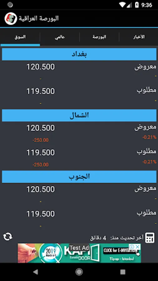 Iraq Borsa app, previously known as Borsat Baghdad, is an economic news application reporting real-time exchange rates changes from financial markets and platforms in Iraq