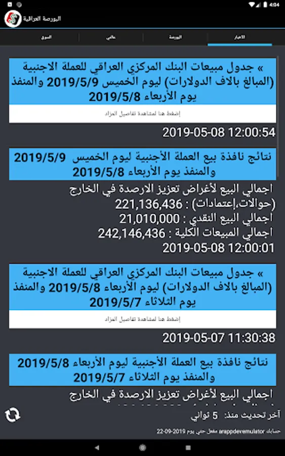 - The latest economic news and the daily auction bulletin from the Central Bank of Iraq, as soon as it is issued, with details