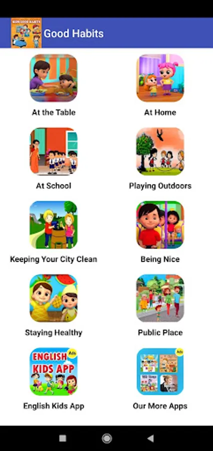 Teaching Good Habits to Children Can Never Become Easier. The Good Manners and Polite Etiquette App has all the Good Habits under one roof with seven subdivisions. Attractive pictures and clear voice explanations make the app interesting and irresistible for children to follow.