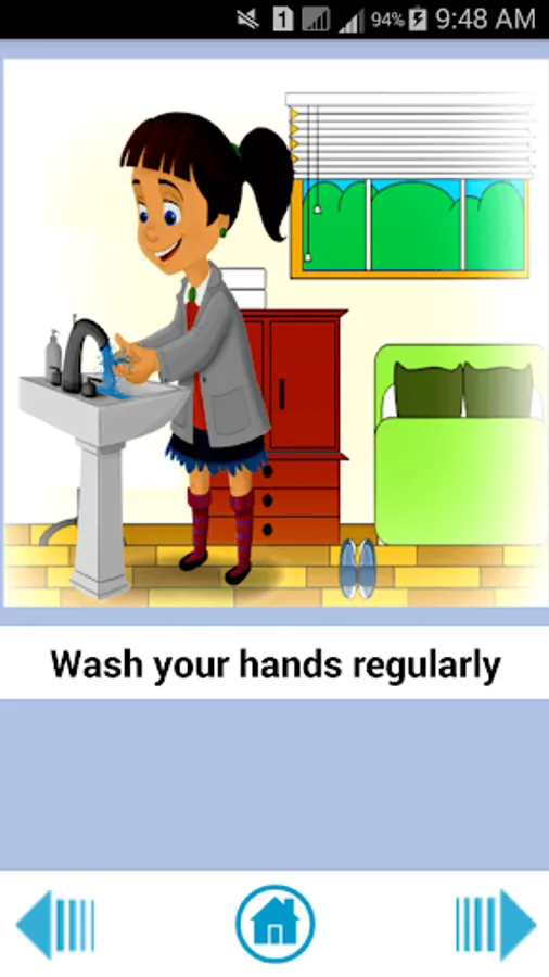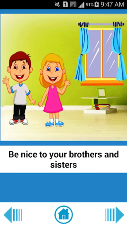 App having Good Habits at the Table Means how to sit on table and use table for Study or Dining table for Dinner.In Good Habits at Homes means Brushing twice a day in morning and Evening Dental hygiene is very important also Bathing every day and eating breakfast also Hand wash Drink Sufficient water not soda.Regular physical activities,Read everyday,Family time this are all Good Habits at Home.