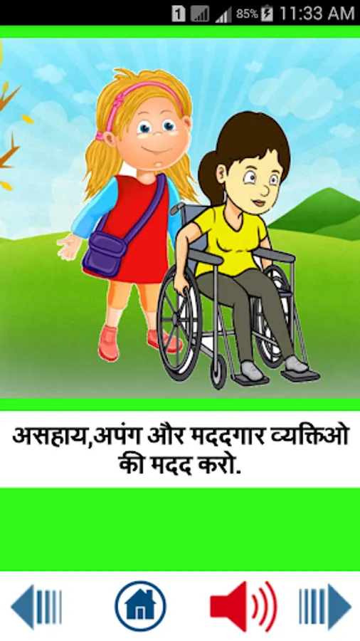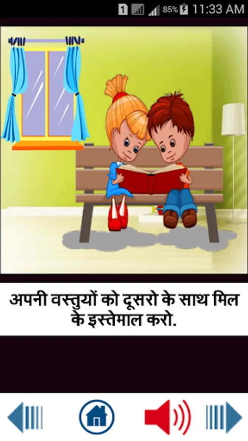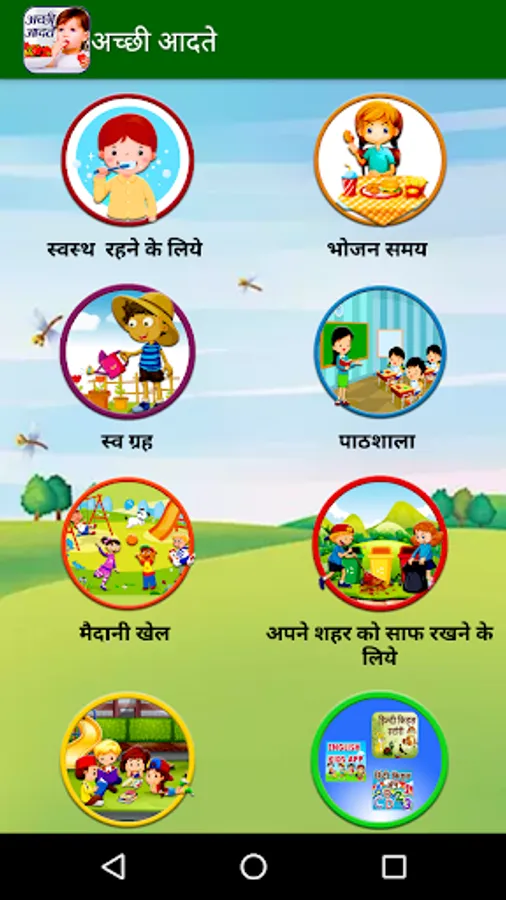 " Kids Good Habits in Hindi "Teach your child everyday good habits through this vibrantly engaging digital storybook with the help of audio narration.There is a popular saying- good habits start early. Now that your child is old is enough to go to school and start with the learning phase of his life, you will need to start educating him about importance of good habits as well. Healthy habits need to be started early- the earlier your child is introduced to them, the lesser effort he will have to make to inculcate them in his day to day life.