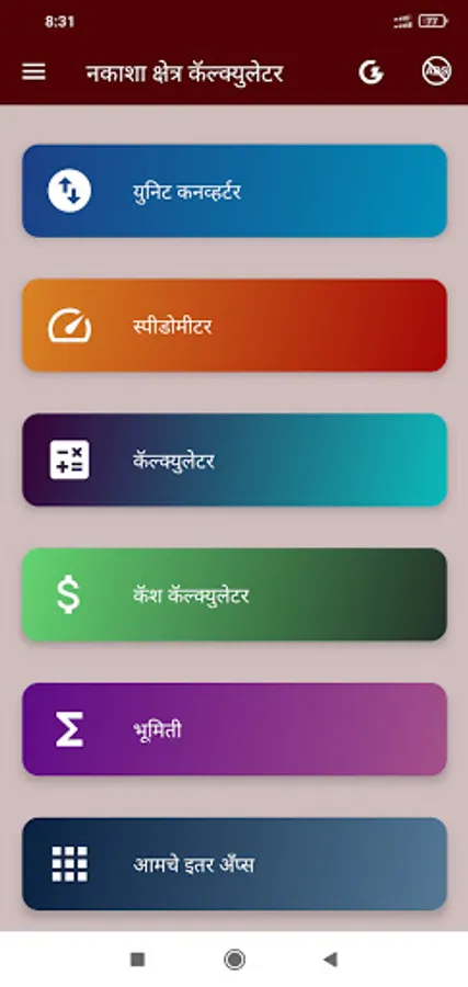 - Speedometer- Division Calculator- Cash Calculator- Geometry in Marathi