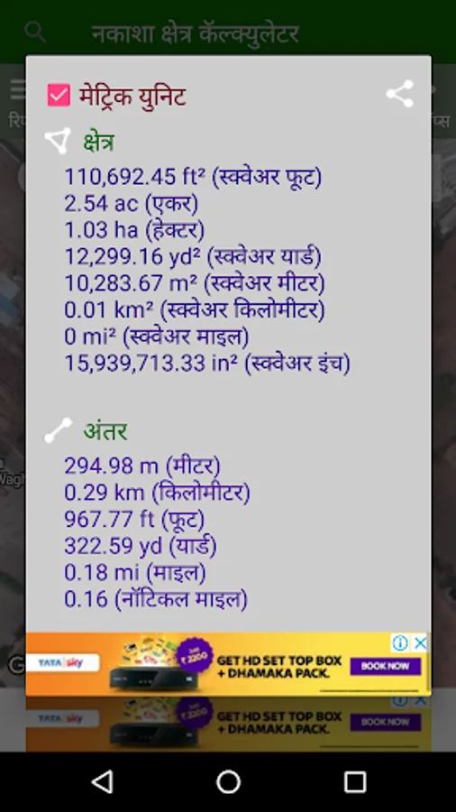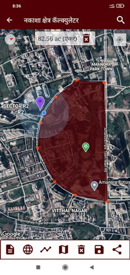 नकाशावरील कोणतेही क्षेत्र आणि अंतर मोजण्यासाठी मराठी मॅप एरिया कॅल्क्युलेटर उपयुक्त आहे. आपण उत्कृष्ट अचूकतासह क्षेत्र आणि अंतर मोजण्यासाठी नकाशावर एकापेक्षा जास्त अचूक बिंदू ठेवू शकता. आपण इच्छित असलेले स्थान शोधू शकता आणि त्या स्थानाचे क्षेत्र मोजू शकता आणि वर्तमान ठिकाणाहून त्या स्थानावर अंतर मोजू शकता. या अँप चा वापर करून आपण खालील टूल वापरासाठी करू शकता.