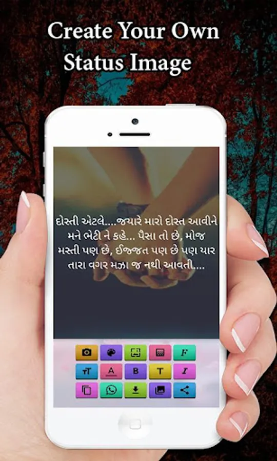 You can create statuses by yourself. You can take pictures from the gallery or your camera and change the color, different font, theme, background image, etc.as per your choice and creativity. Now You can simply share this edited status or messages on social networking sites such as WhatsApp, Facebook, Instagram. You can send greetings to your friends during the festival.