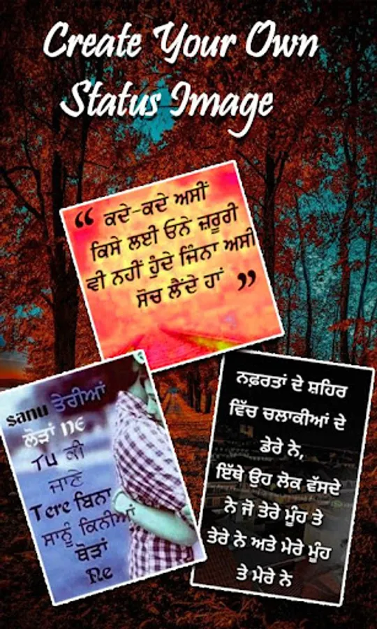 You can create statuses by yourself. You can take pictures from the gallery or your camera and change the color, different font, theme, background image, etc.as per your choice and creativity. Now You can simply share this edited status or messages on social networking sites such as WhatsApp, Facebook, Instagram. You can send greetings to your friends during the festival.