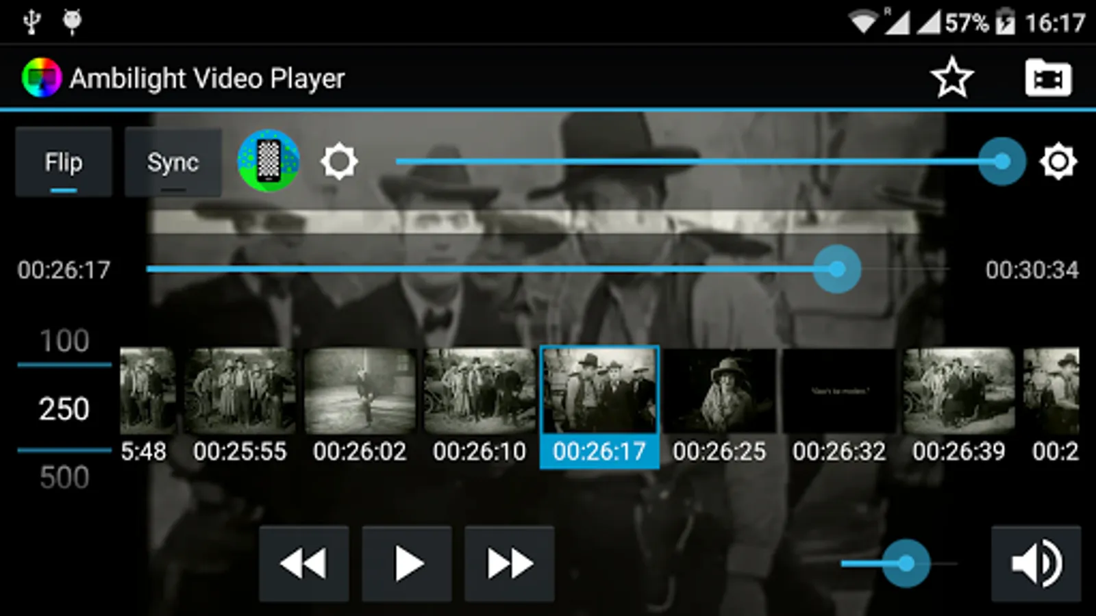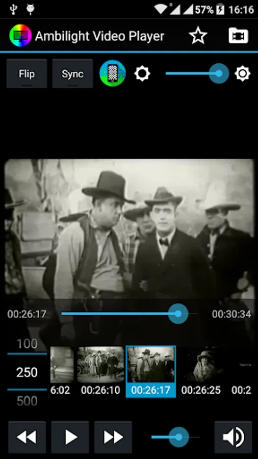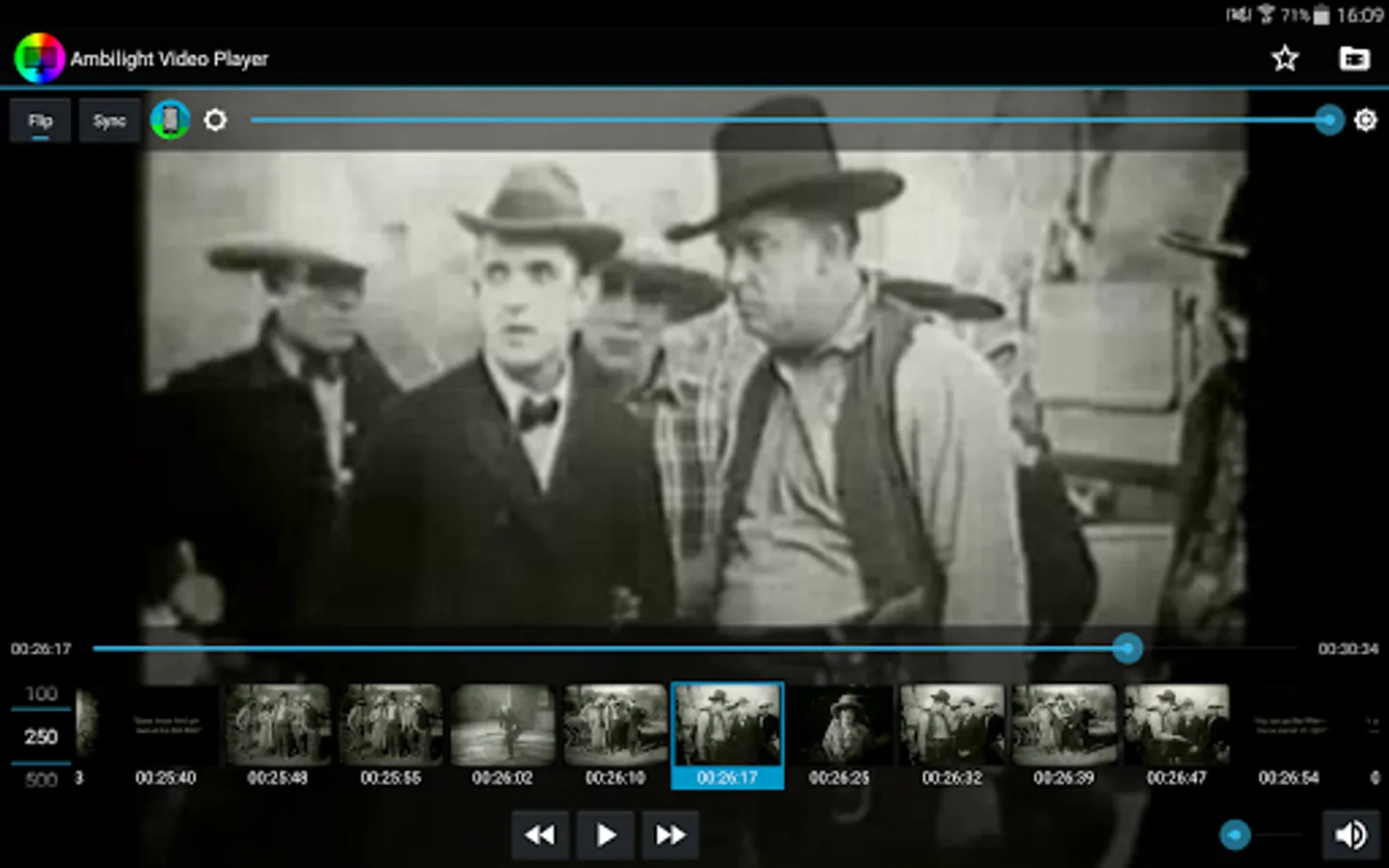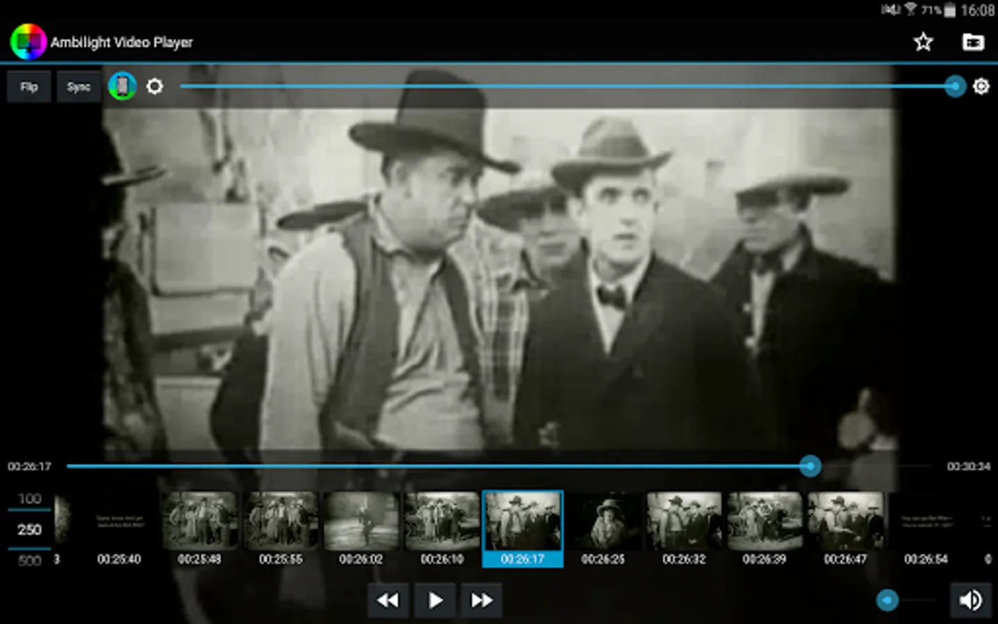 The idea to get Ambilight is the next, ever tried to put your tablet or mobile behind the screen where you're watching film focusing on the wall, if it is playing the same movie on the tablet or mobile can enjoy the light generated environment ... but there is a problem and you need to play the movie flipped horizontally (mirror effect) that if no ambient light to be generated will be wrong to what you see. It is also difficult to synchronize playback or mobile tablet with the screen you are watching the movie. To solve this we created Ambilight Video Player which facilitates in the mirror effect and incorporates a sequence of syncronización.