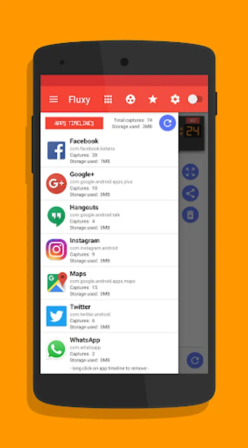 Fluxy: Time Machine, is an app that records the screen, being able to travel to the past of what was done in the device. You can see the general timeline that shows you chronologically to the most remote past or you can filter to see the timelines per app. Nothing escapes your control from now you are a time traveler!
