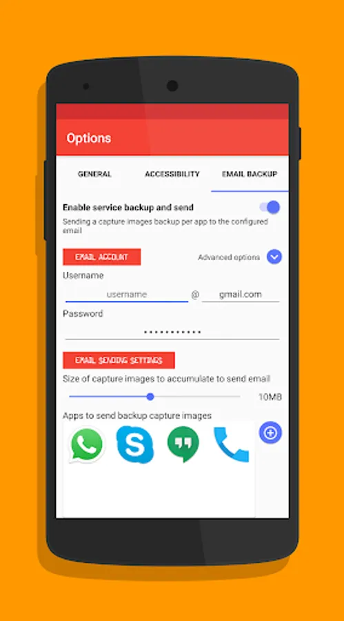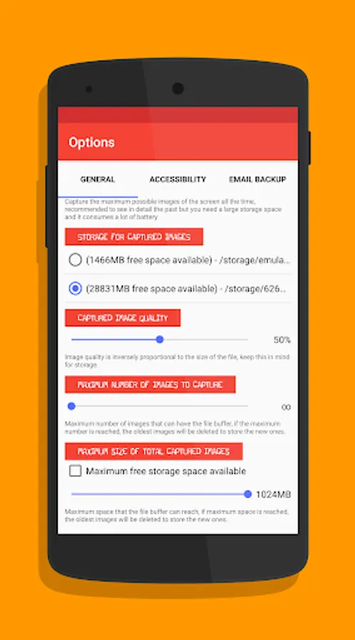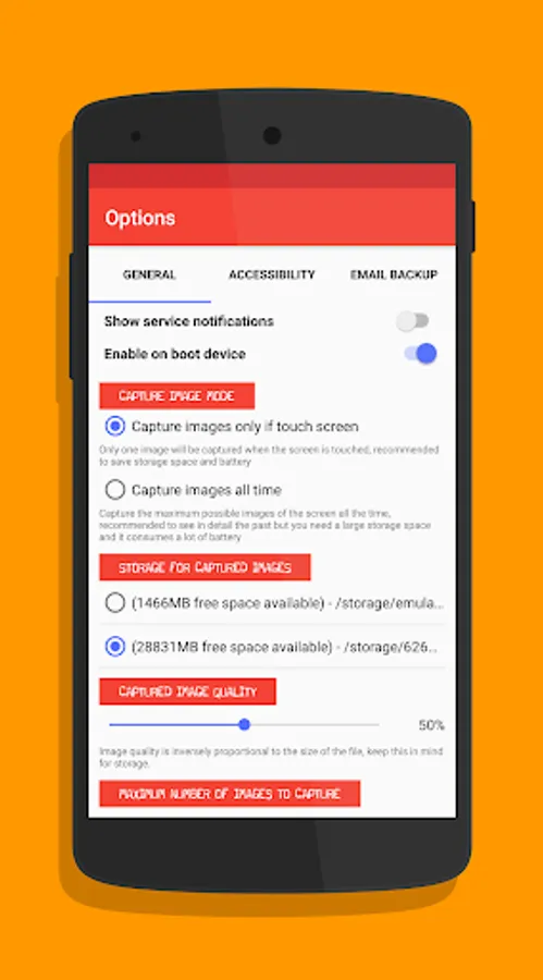 - Backup captured images by app to email