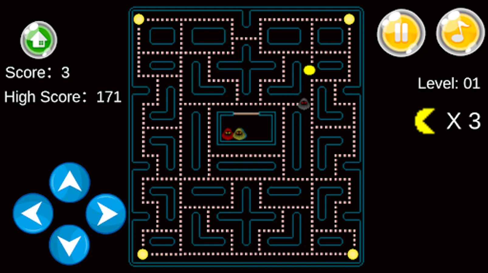 As you progress in the game the game speeds up and the number of ghosts increase.