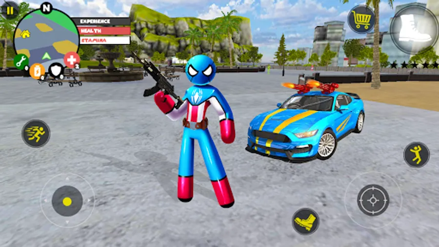 US Spider Capitaine american Stickman Rope Hero City Gangstar Mafia Gangstar Crime is a city simulator in third person view (and FPS mode), where you drive an amazing cars or a motorbike. You play is a hero / legend and whole city fears you. Become a chief on the streets of anti criminality in town.