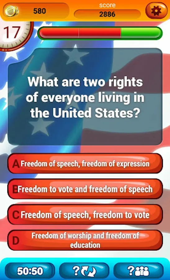 If you plan to go, live and work in the United States and you think you need something to prepare you for the citizenship test you are obliged to take before becoming a US citizen, this “US Citizenship Test Quiz” is the right trivia game for you! This trivia quiz can help you a lot! Check your knowledge on US history, US geography, US laws and rights and all the other important elements you need to pass the most important test before you apply for citizenship or green card via this unique and fun trivia quiz that consists of tons of useful questions. Download this awesome trivia game and prepare for the questions asked at the interview in an easy way! Download this very useful and interesting citizenship test quiz and learn everything you need to know about citizenship test questions and prepare for one of the most important tests of your life! This educational citizenship app has everything on the questions frequently asked at US citizenship interviews! Learn useful information about American history trivia, US presidents, culture and so much more. The most useful citizenship practice quiz app for everyone!