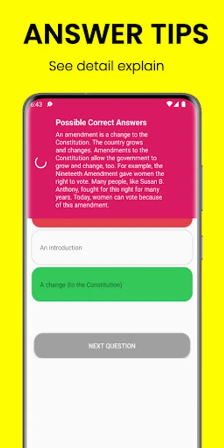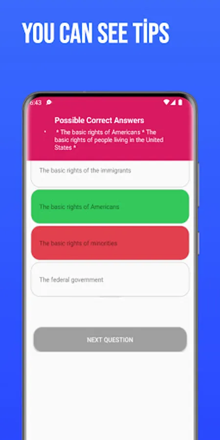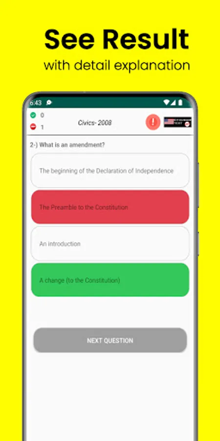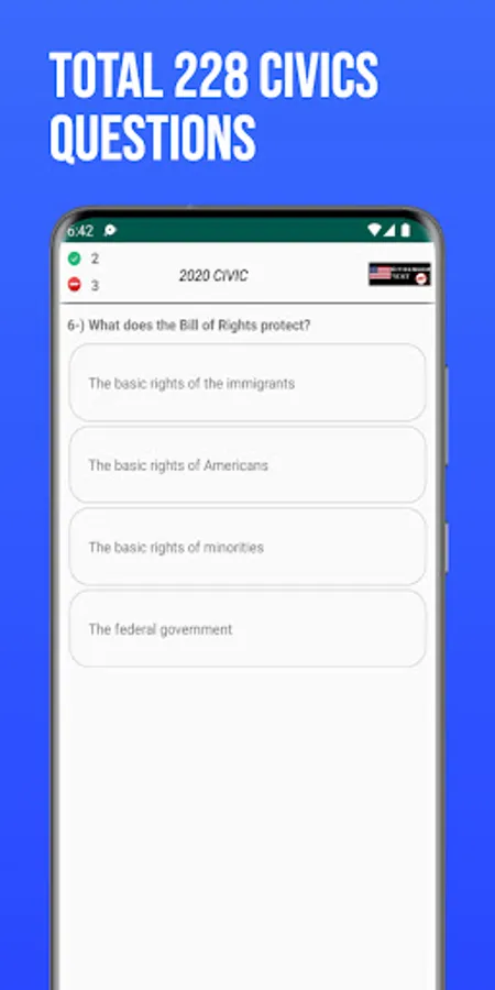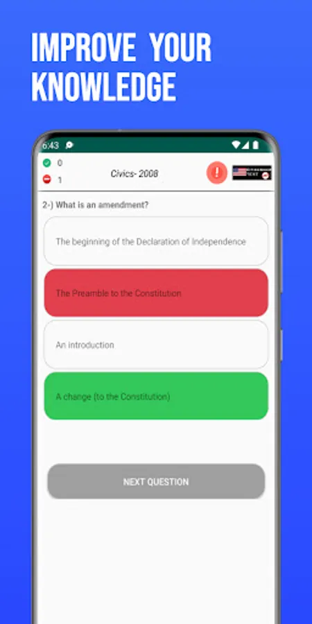 Learn about America's history and all the rights and responsibilities of being an American testing yourself everyday on your phone.