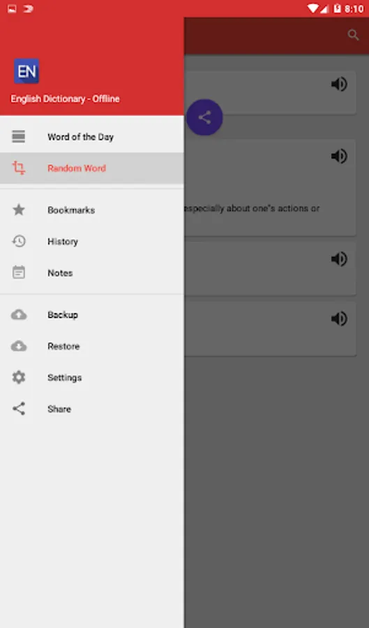 Free Offline English dictionary contains meanings of English words based on wordnet.