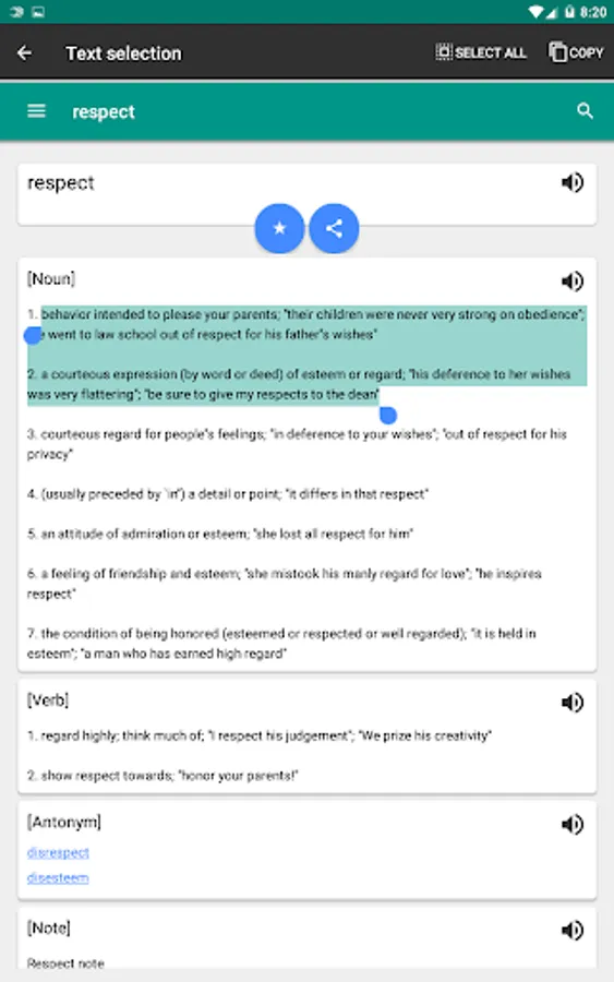 ✪ Select and share text or share word details as a whole.