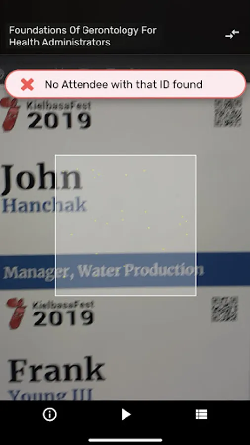 Administrators can use our online web app to create events, add sessions, and identify how many credits are available for each session. Nametags can then be generated, each containing a unique QR Code which administrators can scan via the mobile app to confirm attendance.
