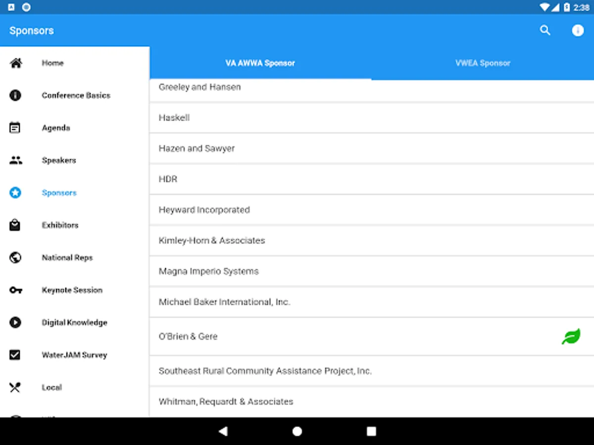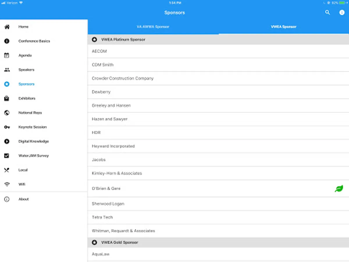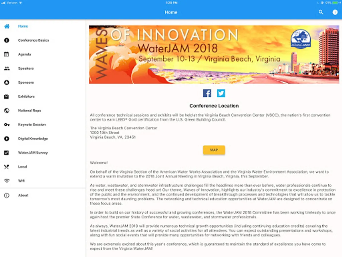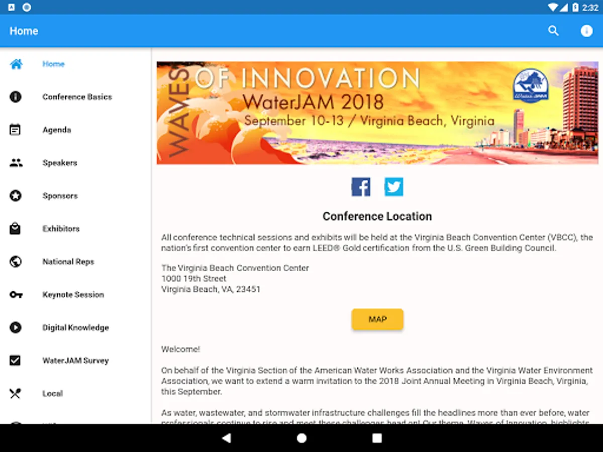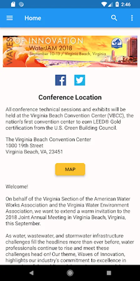 Conference App for the 2018 Joint Annual Meeting of VA AWWA and VWEA.