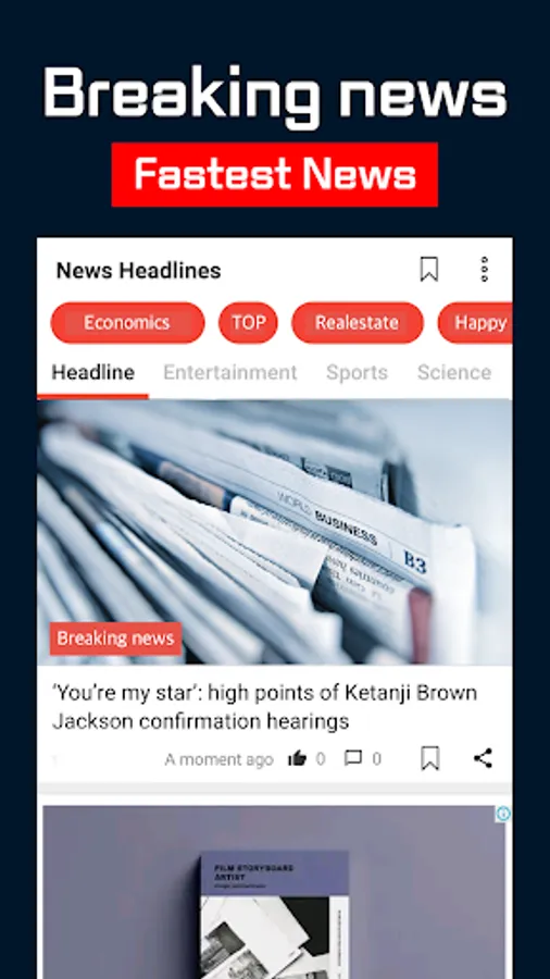 You can easily find news by interest, such as breaking news, entertainment, sports, and global.
