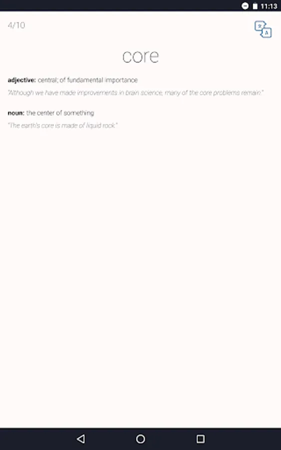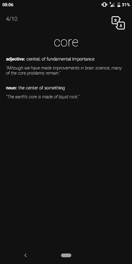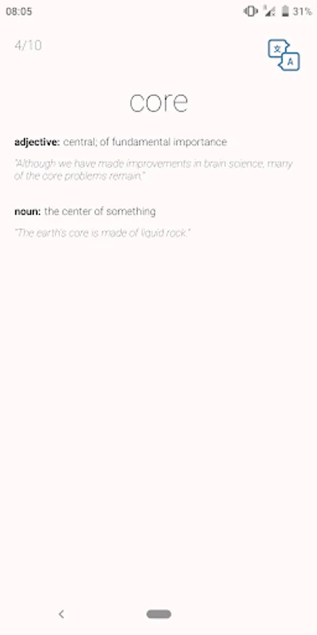 - Easily learn the words. The words are divided into blocks of 10 words.