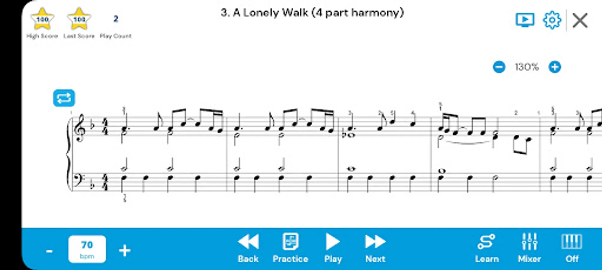 - Adjust the tempo, volume, and specific measures to practice