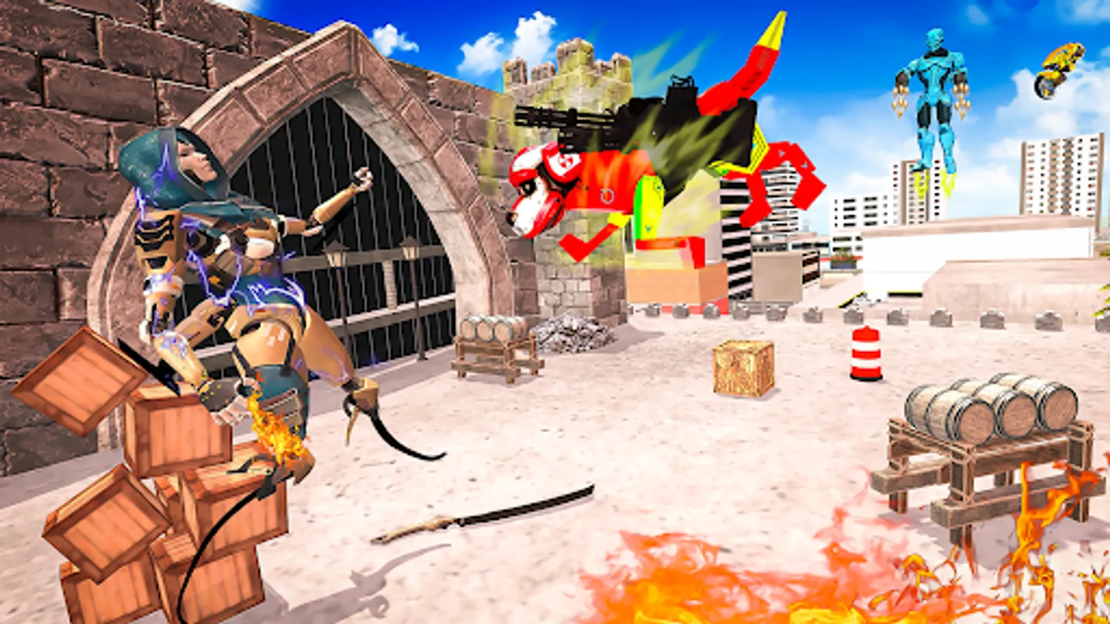 Get ready to play this exciting crime chase game. This Police robot dog have a unique features and attractive gameplay for the lovers of cop dog games. As a police dog chase down the criminals, gangster and mafia lord which are trying to escape in this survival game. This is an incredible mixture of police dog games and robot transform games in simulation category. You are the security in charge of Miami city which is now in your hands as robo cop. You have some unique super powers to defeat the criminals, so stand with the US police and chase down the monster criminals in Police Robot Dog Crime Chase Game. These robot car transform game is popular but playing as a robo cop is more challenging for you. Perform your duty well and don’t let the mafia lord control the Miami city.