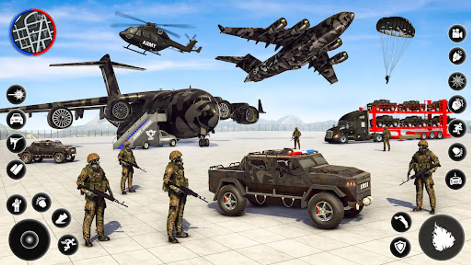 Welcome to a new adventure of the army vehicles transporter drive game: army transporter in which you have to load an army vehicle, unload different military weapons and cargo material from one point to the other in army games. Drive army trucks, and jeeps as well as aircraft to different locations like army base camps and army offices. Responsible for delivery of army logistics by driving heavy cargo army trucks and offroad army trailers within cities and mountains. A great army transport game: vehicle transport plane driver simulation where you will experience like military climate within soldiers. Follow the army commands of headquarter and be prepared in your work time. Drive your army vehicle: truck transport sensible way to overcome the challenges to transport material safely to its destination. Explore your skills on different off-road game with army trucks to rule everywhere. Pick and drop army cargo tanks, trucks and other automobile vehicles and shift safely.