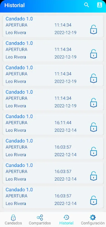 Application used to handle locks via Bluetooth.