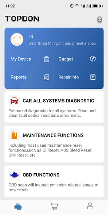 Look no further and go with TOPDON SmartDiag Mini, to turn your smartphones & tablets into a pro-level scan tool to diagnose all available car systems such as ABS, airbag, Engine, AT, EVAP, TPMS, BMS, EPB, etc. with data revealed in detailed text, merged graph for easy view. Get everything you need in daily car diagnostic work with loads of reset functions for Oil, EPB, SAS, BMS, TPMS, IMMO, Gearbox, Sunroof, Suspension, AFS Headlamp, EGR; and guided maintenance procedures for ABS Bleeding, Injector Coding, DPF Regeneration, Throttle Body Adjustment, Gear Learning. Compatible with Android devices (Android 5.0, or newer). Simply plug the mini-sized adapter into the OBD port, without bulky equipment and tangled cables, and run feature-rich and easy diagnostics anytime, anywhere.