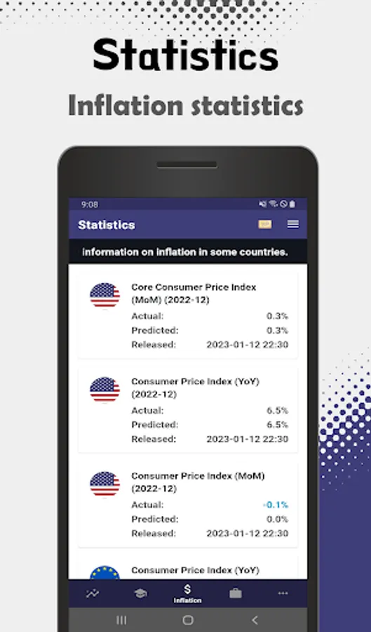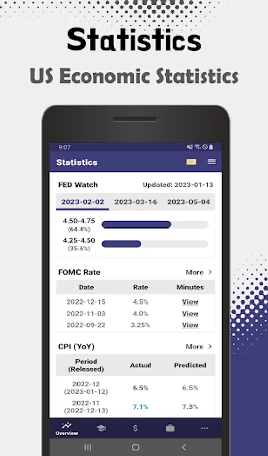 This app provides key economic statistics information of the United States. We want to help each user make the right investment decision by providing information on base rates, inflation, employment, and etc. In addition, you can check the comments of influencers who can have an impact on the global economy with a single word.