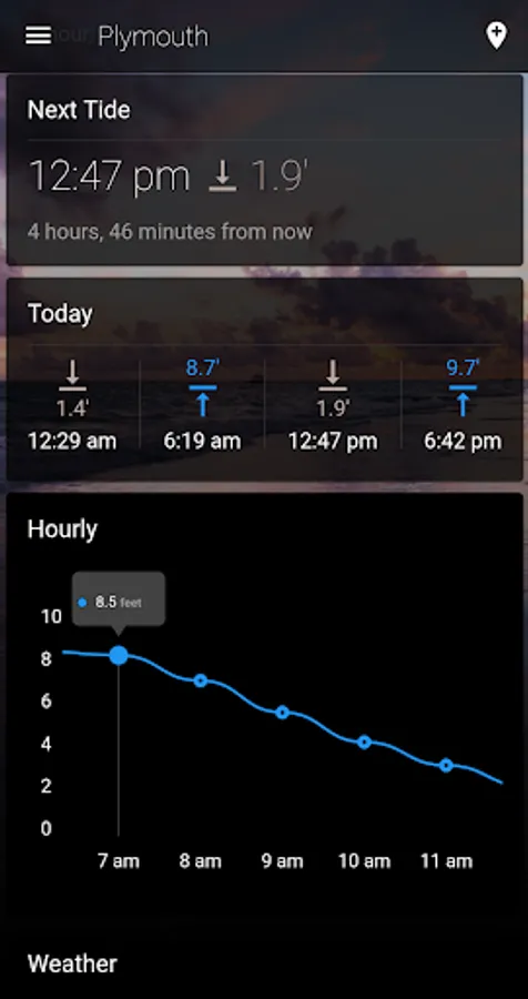 Clean interface to view current tides for your selected location including weather information. Shows 10 days of tide predictions.