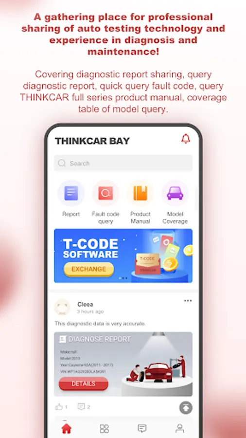 Thinkcar bay is a service application for THINKCAR brand products, providing users who have purchased various types of automotive diagnostic products with tutorials, case studies, after-sales service, user product management and online viewing of diagnostic reports for various products, providing assistance to users in the process of using the products.