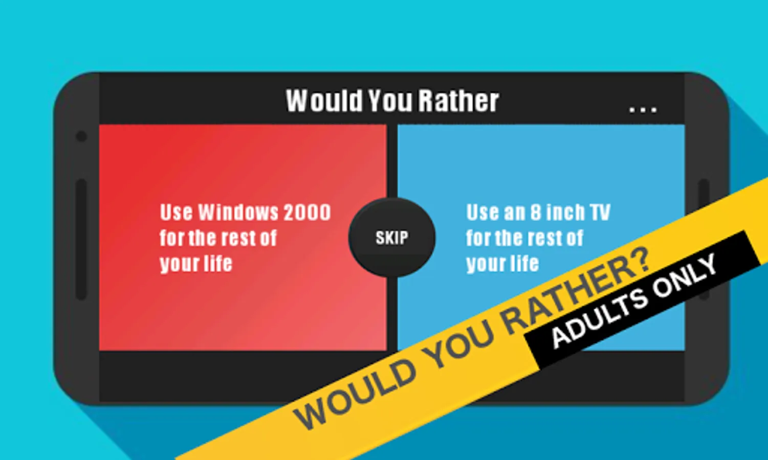 This version of Would You Rather Reigns is only for adults, the gameplay is exactly the same, choose between two difficult scenarios.