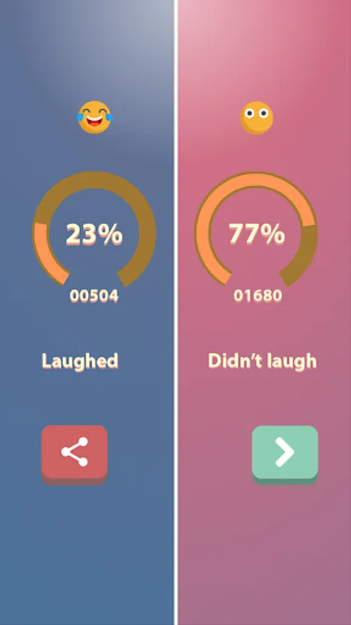 In this amazing game we will present you a short video clip and once finished we will ask you if the video is funny to you or you didn't laught at all. Then you will be able to see percentages based on how many people found the video funny and how many not.