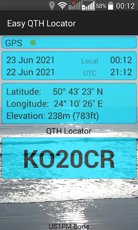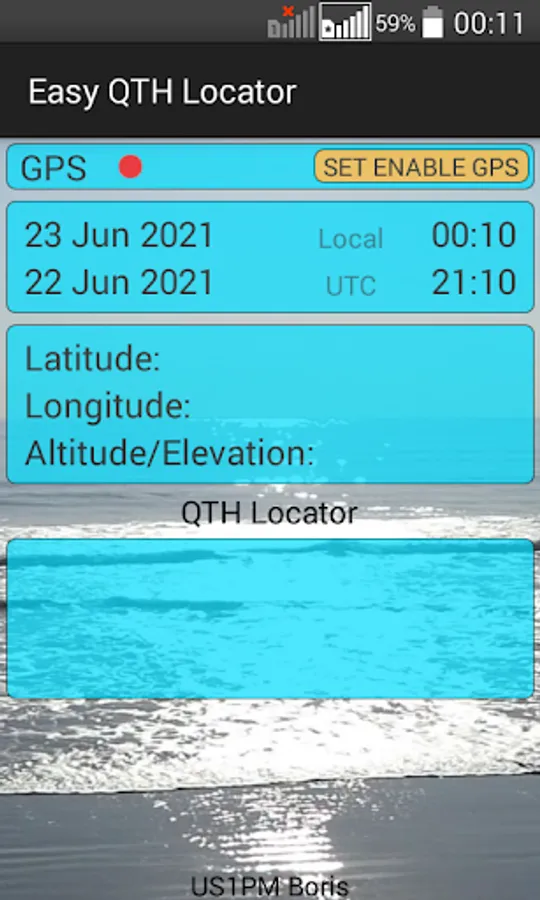 This app displays the current value QTH Locator, calculated based on the geographical coordinates obtained from the satellites of the GPS system, mobile network, Wi-Fi.