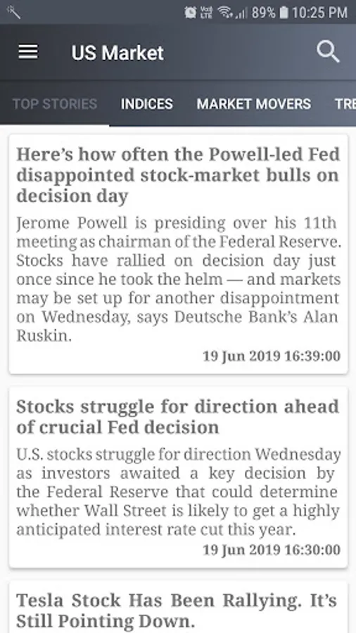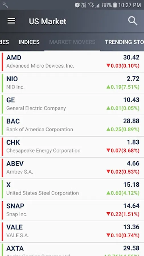 The app covers multiple assets from Dow Jones, NYSE & Nasdaq exchanges, so that you may track Indices & Sectoral Indices from US Exchange Market.