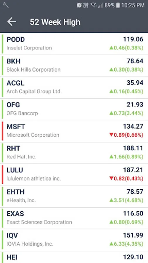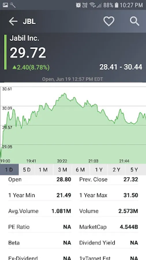own, Day Low - High, Year Low - High, Day Change, etc.