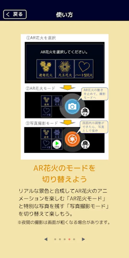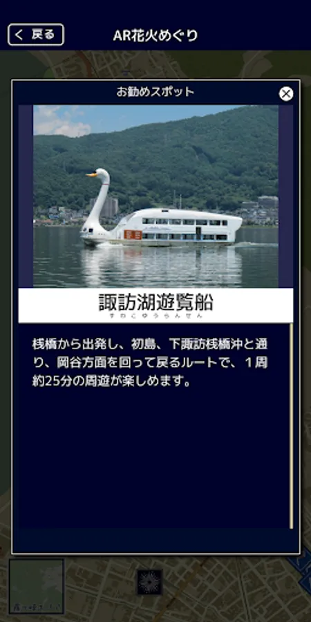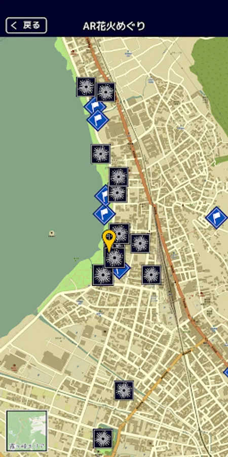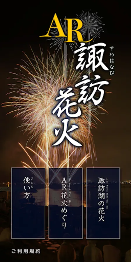 This application "AR Suwa Fireworks" allows you to enjoy 3 types of AR fireworks by visiting 21 AR fireworks spots set up in Suwa city.