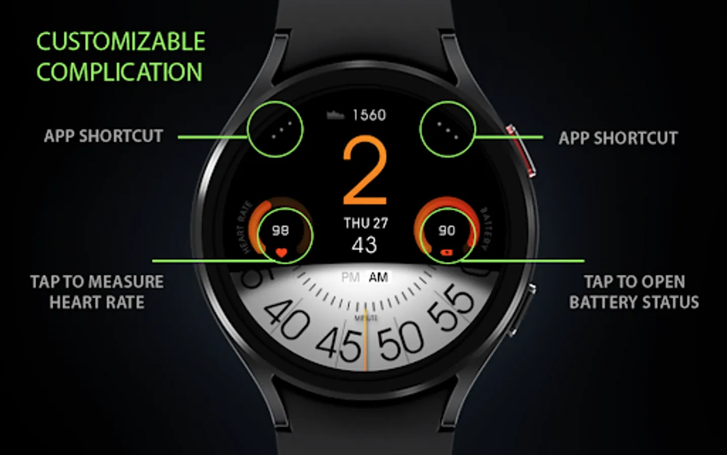 This watch face requires Wear OS API 28+, please check your watch compatibility before purchasing. Compatible with Galaxy Watch 4, Tix Watch, Fossil, and many others.