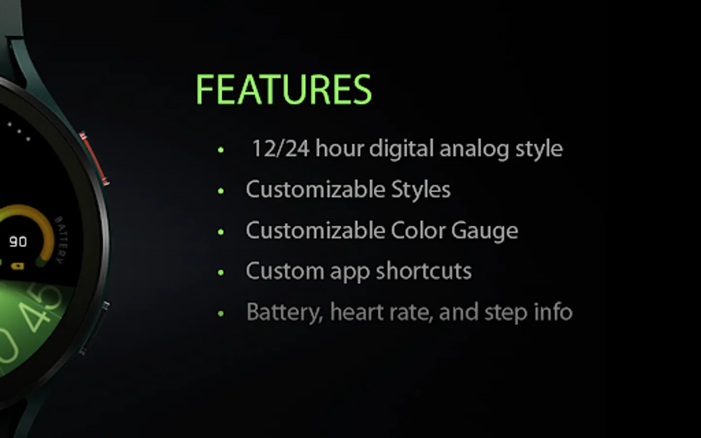 Now available for Wear OS watch, a unique digital and analog combination watch face. Customize the style with an easy menu and make it yours!