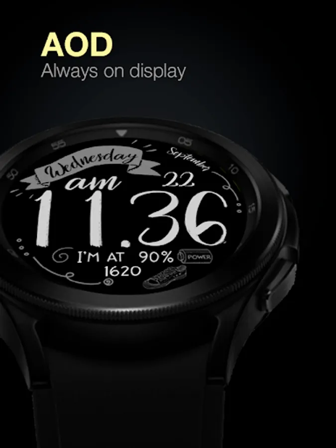 Special designed Always On Display ambient mode. Turn on the Always On Display mode on your watch settings to show a low power display on idle. Please be aware, this feature will use more batteries.