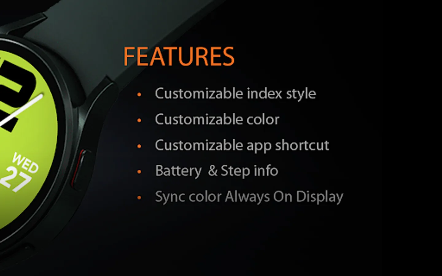 Special designed Always On Display ambient mode. The color tone is synced with the normal mode. Turn on the Always On Display mode on your watch settings to show a low power display on idle. Please be aware, this feature will use more batteries.