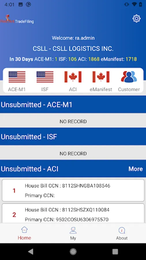 RA-Trade Filing App is easy to use and gives complete visibility to US & Canada customs responses for your cargo.